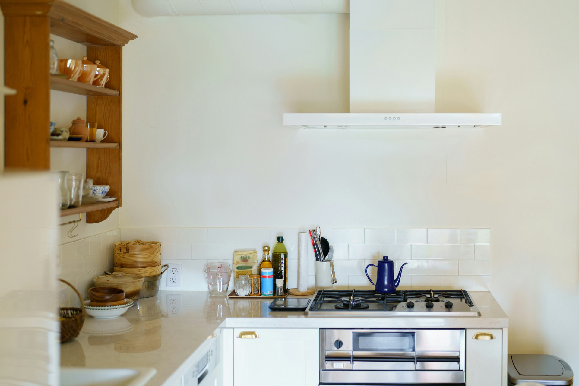 Hvis du vil have et mere minimalistisk udtryk, kan du også vælge at fjerne overskabe og i stedet sætte åbne hylder op. Det giver luft og gør køkkenet mere rummeligt.
